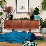 We begin with a few rounds of gentle cat–cow to mobilise the spine and help you arrive in your body. Then you’ll rest your spine back over a rolled blanket. The front of the chest is free to soften and widen, giving the breath space to deepen naturally. The side body can expand. The spine feels held, grounded, and gently encouraged to open.